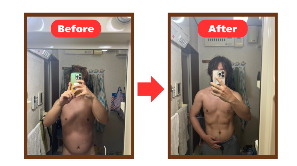 • 6ヶ月後:周りから「変わったね」と言われる(約6kg減)