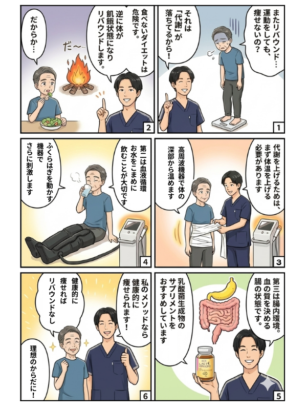 元理学療法士が、食事制限なしで代謝を高め、健康的に痩せる体づくりをサポートします。